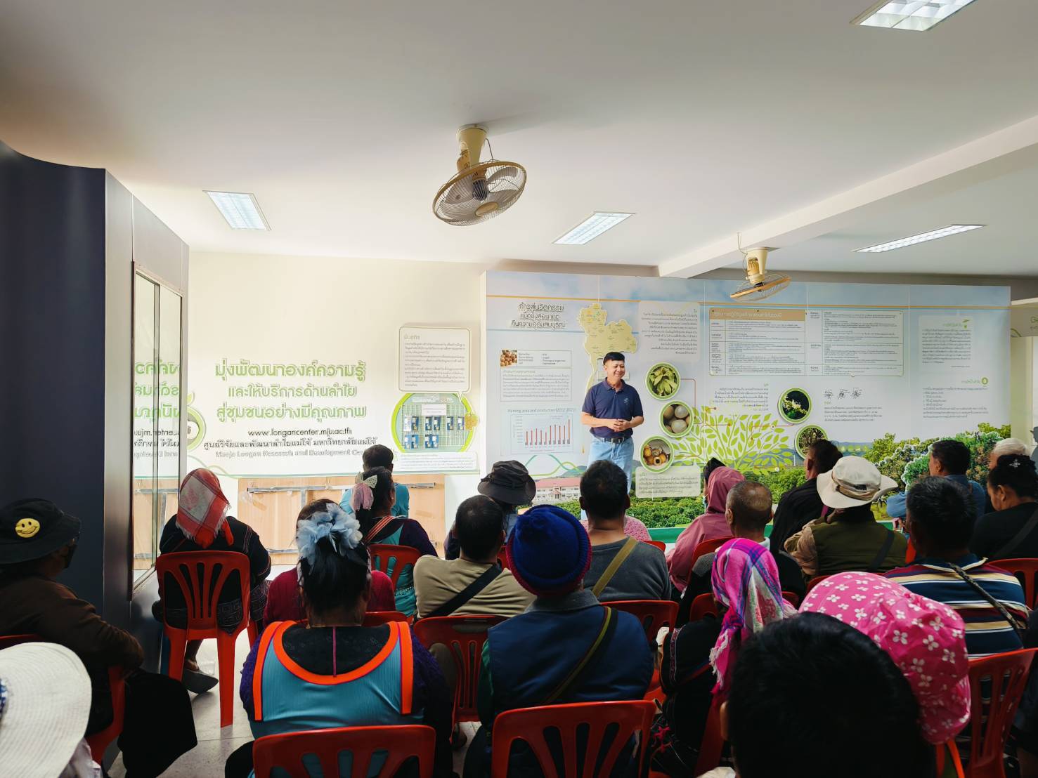 วันอังคารที่ 4 กุมภาพันธ์ 2568 สำนักงานเกษตรอำเภอแม่แตง ได้จัดกิจกรรม ส่งเสริมระบบเกษตรแบบแปลงใหญ่เพื่อปรับเพิ่มผลิตภาพ ได้จัดอบรมเกษตรกรเพื่อเข้าสู่ระบบมาตรฐาน GAP โดยนำกลุ่มเกษตรกรแปลงใหญ่ลำไย ตำบลบ้านช้าง อำเภอแม่แตง จังหวัดเชียงใหม่ จำนวน 43 คน เข้าศึกษาดูงานด้านการผลิตลำไยคุณภาพตามมาตรฐาน GAP ณ แปลงลำไยสาขาวิชาไม้ผล คณะผลิตกรรมการเกษตร มหาวิทยาลัยแม่โจ้ โดยมี ผู้ช่วยศาสตราจารย์ ดร.วินัย วิริยะอลงกรณ์ เป็นวิทยากรบรรยาย พร้อมด้วยเจ้าหน้าที่งานบริการวิชาการและวิจัยให้การต้อนรับ