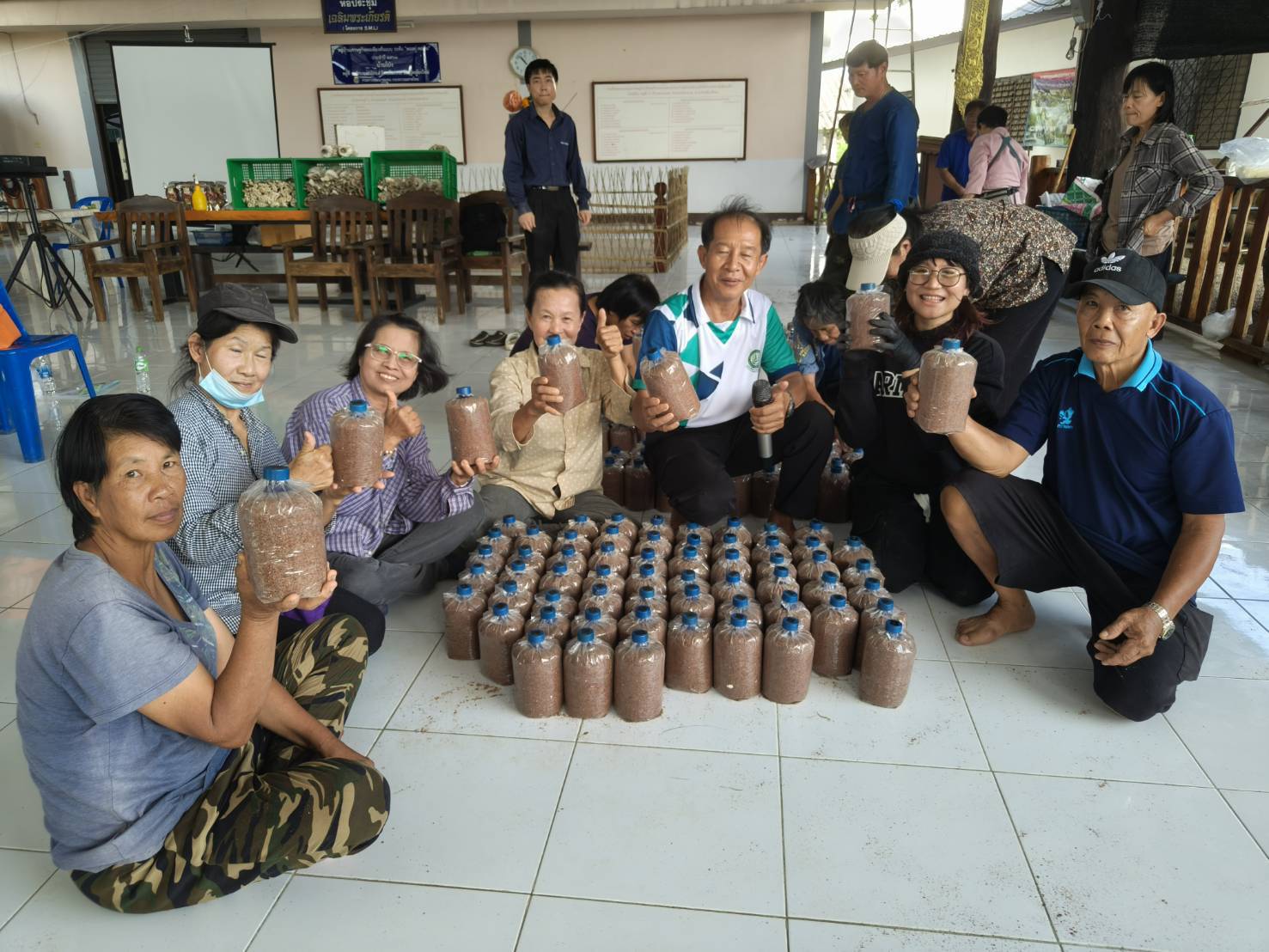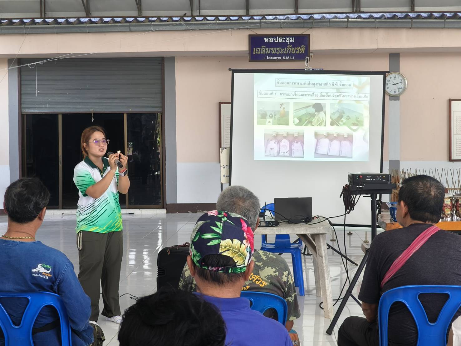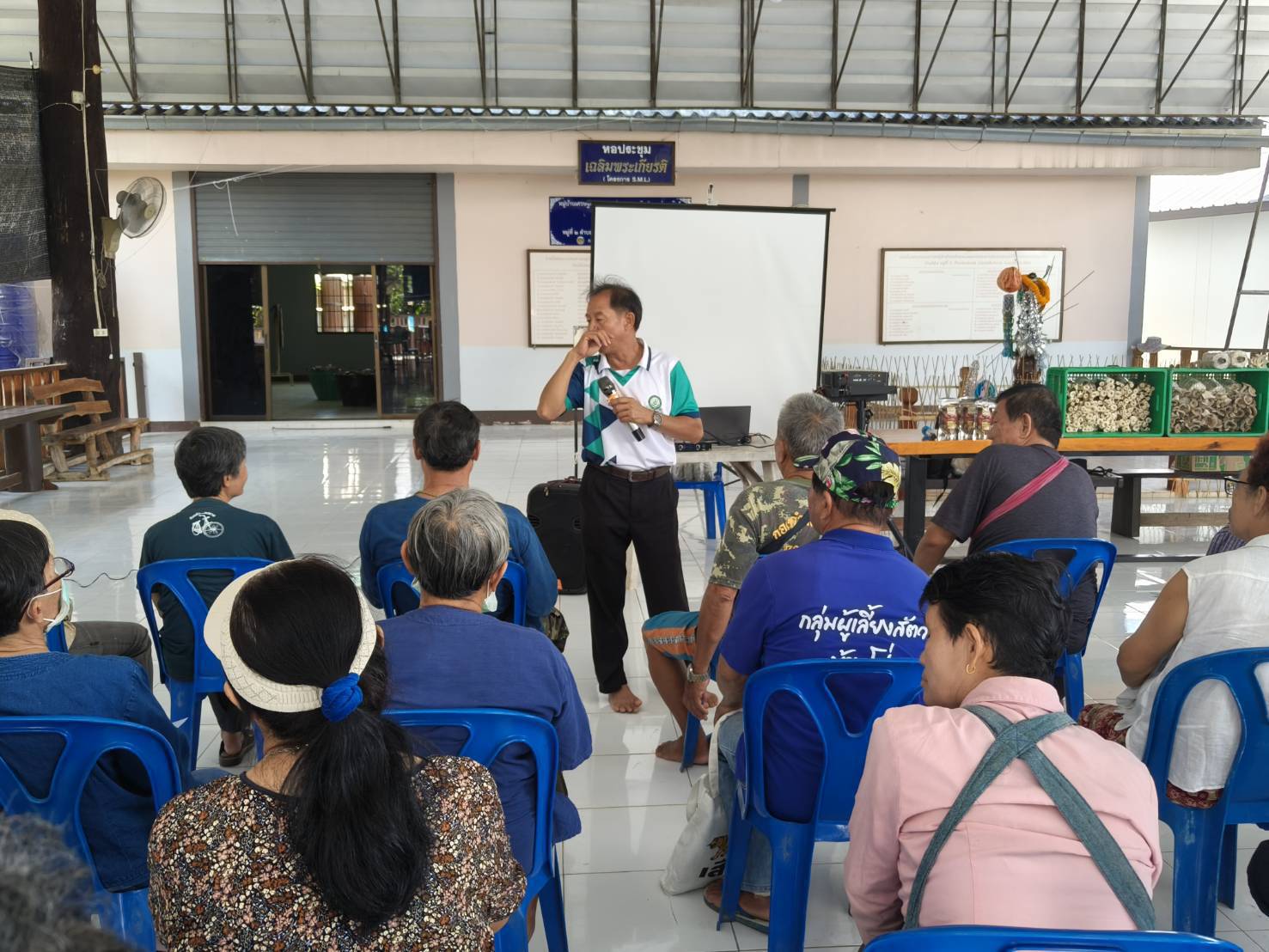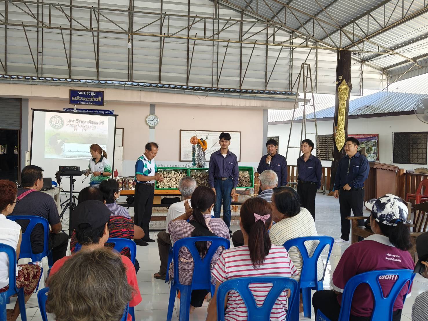 วันที่ 21 พฤษภาคม 2568 งานวิจัยและบริการวิชาการได้จัดกิจกรรม ฝึกอบรม“การผลิตเห็ดเศรษฐกิจ” เรื่อง การผลิตเห็ดแบบปลอดภัยไร้สารพิษ ภายใต้โครงการ การถ่ายทอดองค์ความรู้การผลิตผักและเห็ดปลอดภัยแบบครบวงจรให้แก่เกษตรกรในชุมชน โดยมีนายเอนก ชมชื่น ประธานสหกรณ์การเกษตรสันทราย กล่าวต้อนรับ วิทยากรบรรยาย โดย นายปรีชา รัตนัง และทีมงาน สำหรับการฝึกอบรมในครั้งนี้มีผู้เข้าร่วม จำนวน 32 คน ณ ศาลาเอนกประสงค์ ม.2 บ้านโป่ง ตำบลแม่แฝก อำเภอสันทราย จังหวัดเชียงใหม่
