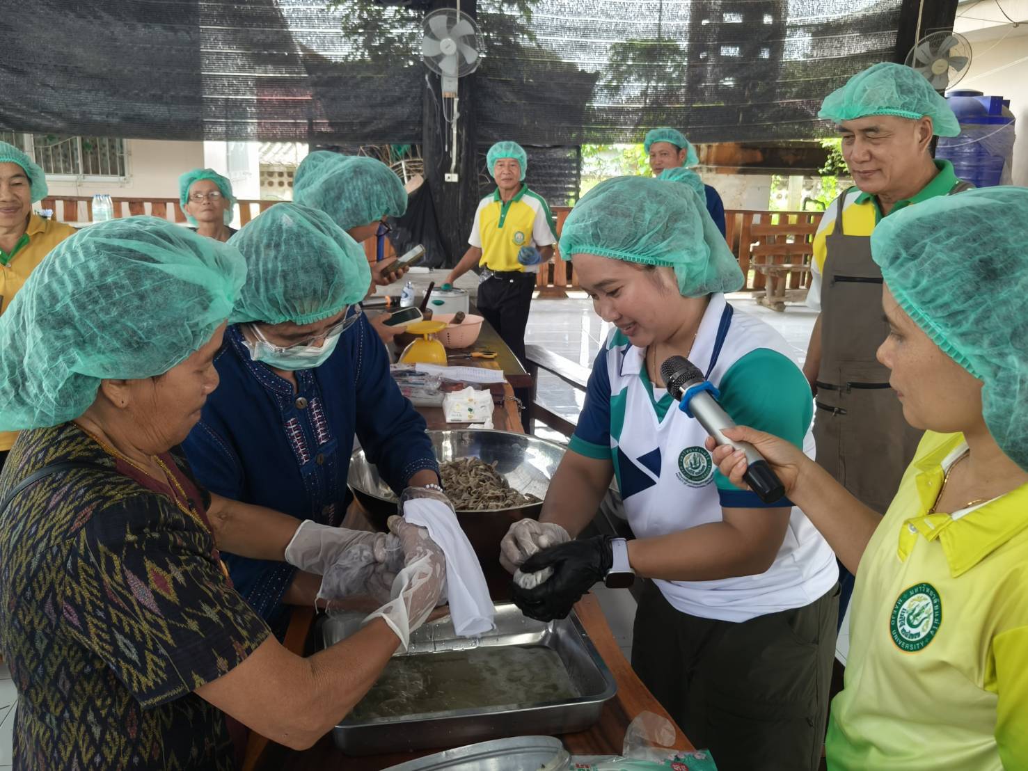 วันที่ 26 พฤษภาคม 2568 งานวิจัยและบริการวิชาการได้จัดกิจกรรม ฝึกอบรม“การผลิตเห็ดเศรษฐกิจ” เรื่อง การแปรรูปผลผลิตจากเห็ด ภายใต้โครงการ การถ่ายทอดองค์ความรู้การผลิตผักและเห็ดปลอดภัยแบบครบวงจรให้แก่เกษตรกรในชุมชน โดยมีนายเอนก ชมชื่น ประธานสหกรณ์การเกษตรสันทราย กล่าวต้อนรับ วิทยากรบรรยายและฝึกปฏิบัติ เรื่องการทำแหนมเห็ด โดยนายปรีชา รัตนัง และทีมงาน เรื่องการทำไส้อั่วเห็ด โดยนายสันต์ชัย มุกดา และทีมงาน พร้อมด้วย ผู้ช่วยศาสตราจารย์ ดร.สุธีระ เหิมฮึก รองคณบดีฝ่ายวิจัยและบริการวิชาการ มอบใบประกาศนียบัตรให้แก่ผู้เข้าฝึกอบรม จำนวน 32 คน กล่าวปิดงาน โดยนายศุภกร จินะจันตา ผู้ใหญ่บ้านบ้านโป่ง ณ ศาลาเอนกประสงค์ ม.2 บ้านโป่ง ตำบลแม่แฝก อำเภอสันทราย จังหวัดเชียงใหม่