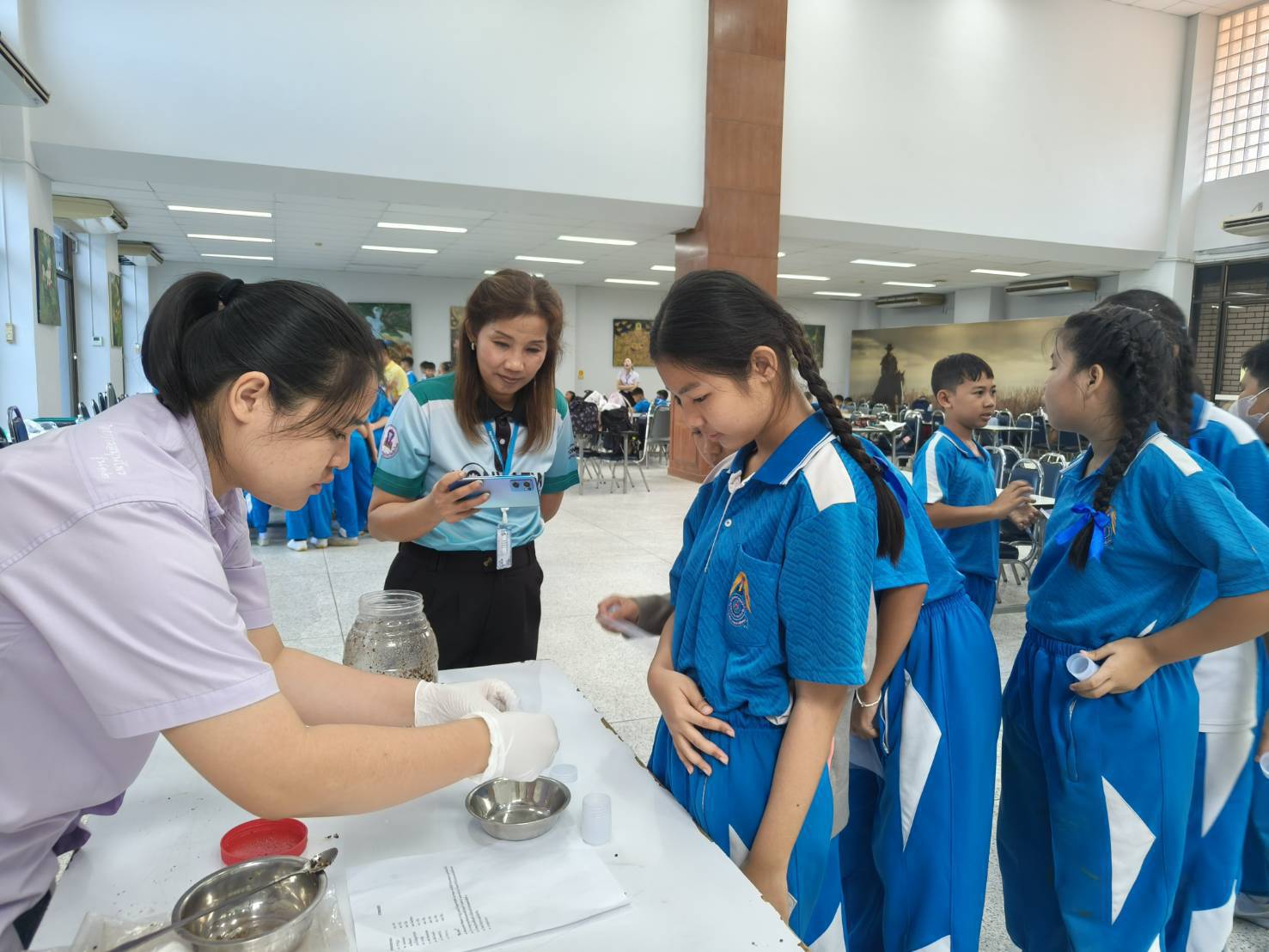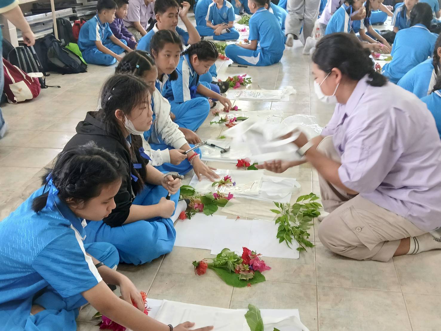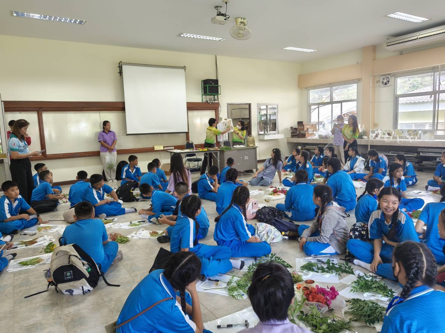 วันที่ 18 สิงหาคม 2568 โรงเรียนต้นแก้วผดุงพิทยาลัย ตำบลขุนคง อำเภอหางดง จังหวัดเชียงใหม่ ได้จัดกิจกรรมศึกษาแหล่งเรียนรู้นอกสถานที่ ตามโครงการส่งเสริมประสบการณ์เรียนรู้นอกห้องเรียน ประจำปีงบประมาณ 2568 ได้นำนักเรียนระดับชั้นประถมศึกษาปีที่ 6 จำนวน 137 คน และคณะครูจำนวน 8 คน เข้าศึกษาดูงานพร้อมฝึกปฏิบัติ เรื่อง “การผลิตยาดมสมุนไพร” วิทยากรบรรยายโดย ดร.นรินทร์ ท้าวแก่นจันทร์ และทีมงาน เรื่อง “ศิลปะการพิมพ์ลายดอกไม้ใบไม้บนผืนผ้า” วิทยากรบรรยาย โดย ผู้ช่วยศาสตราจารย์ ดร.ประนอม ยังคำมั่น , รองศาสตราจารย์ ดร.สายสกุล ฟองมูล และทีมงาน พร้อมด้วยเจ้าหน้าที่งานบริการวิชาการและวิจัยให้การต้อนรับ